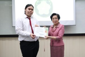 เมื่อวันพฤหัสบดีที่ 10 เมษายน 2568 คณะทำงาน อพ.สธ-มหาวิทยาลัยสยาม ได้จัดกิจกรรม พิธีมอบเงินรางวัลและใบประกาศนียบัตร “การประกวดออกแบบตราสัญลักษณ์ผลิตภัณฑ์ตะลิงปลิง” ให้กับนักศึกษาที่เข้าร่วมออกแบบตราสัญลักษณ์ฯ โดยในงานนี้ได้รับเกียรติจาก ผู้ช่วยศาสตราจารย์ ดร.พลเรือตรีหญิง สุภัทรา เอื้อวงศ์ มาเป็นประธานในพิธีและเป็นผู้มอบเงินรางวัลและใบประกาศนียบัตรให้กับนักศึกษาที่ส่งผลงานเข้าร่วมการประกวดทั้งหมด 27 ทีม จากคณะวิชาต่างๆ 6 คณะ ได้แก่ คณะเภสัชศาสตร์ คณะทันตแพทยศาสตร์ คณะบริหารธุรกิจ คณะเทคโนโลยีสารสนเทศ คณะนิติศาสตร์ และคณะศิลปศาสตร์